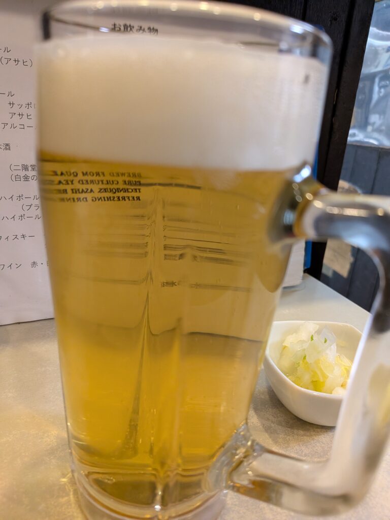 温まったので、戻りノンベエ、生ビール中650円をいただきました~!!女将さんも気さくな方で、初見でもウエルカム&温かな対応なのでご安心を(*^-^*)