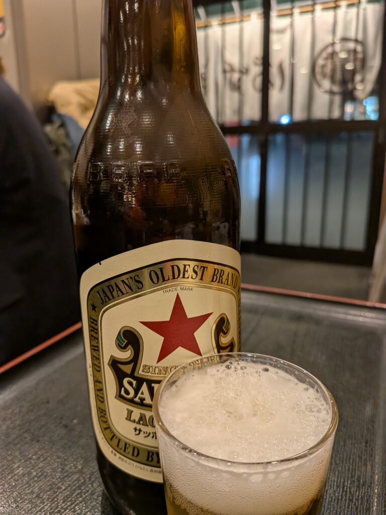 サッポロラガー赤星大瓶700円で乾杯です(*’▽’)