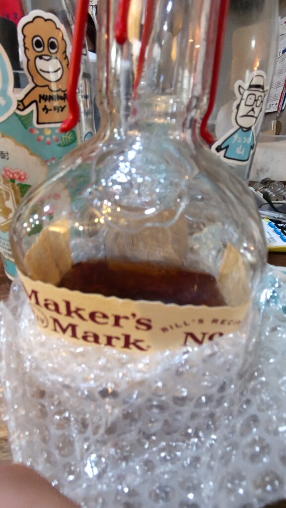 ウーロンハイ、日本酒、ワイン、焼酎、↑メーカーズマークまでごちそうになってしまい…。お客さんだけではなく、ごちそうになるための自分のお酒も作りました。