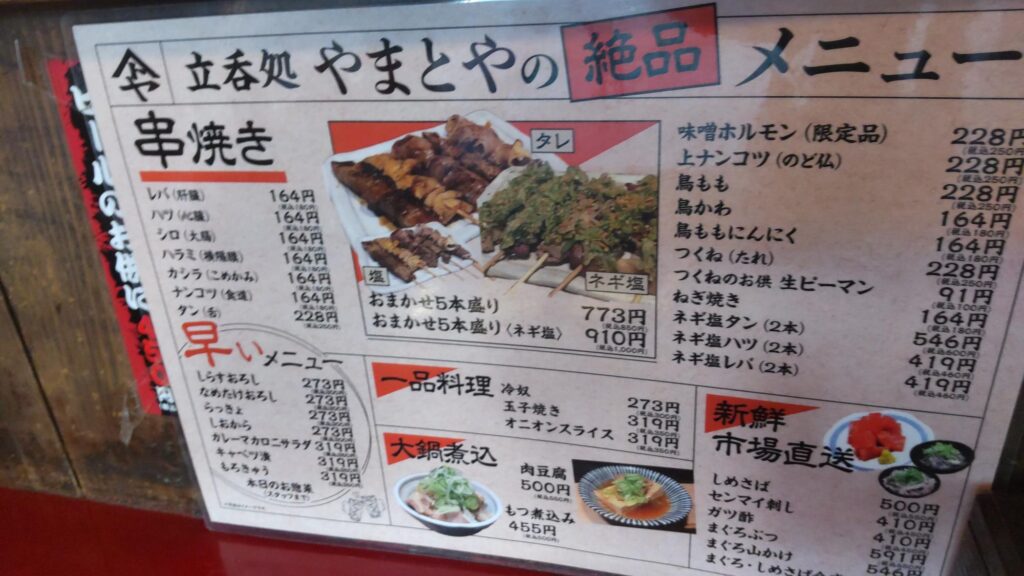JR田町駅・地下鉄三田駅のロータリーにある「やまとや」さん。15時から飲める立ち飲みです!
