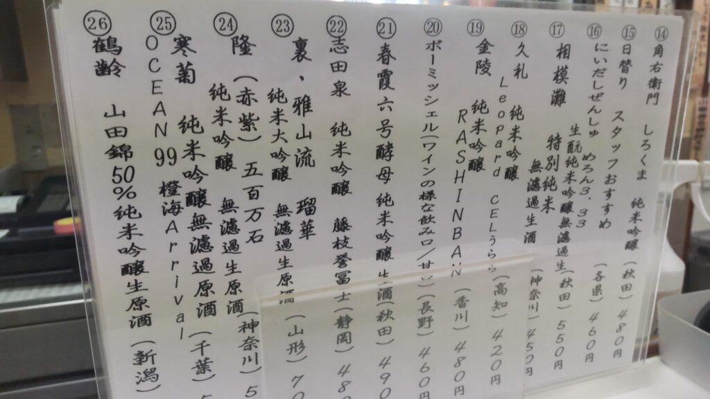 都内では高額な酒を驚嘆価格で飲めるんです。にんだしぜんしゅ550円、相模灘450円、角右衛門480円💦すごいなぁ。いい日本酒がそろいぶみ。
