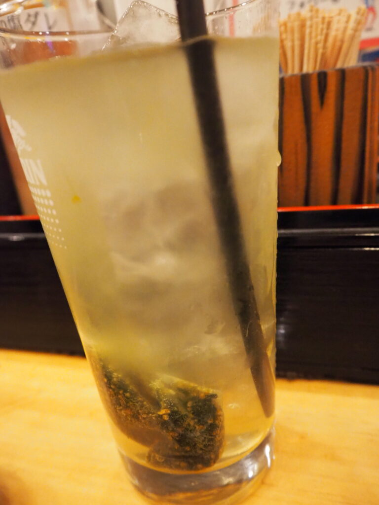 川本屋の緑茶ハイ550円。横浜で歴史あるお茶店「川本屋」さんのお茶を使用しているこだわりぶりです。