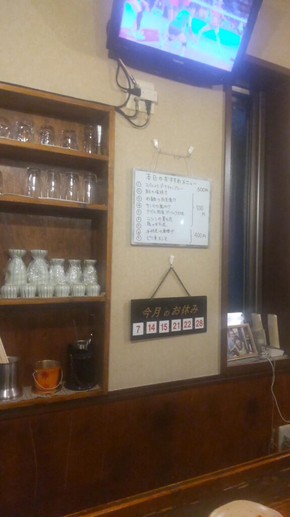 久しぶりに伺えました(^^)/店内はカウンターと小上がり。料理は定番のほか、その日のおすすめメニューがあります。