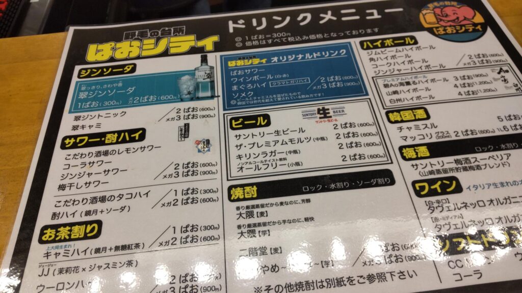 ドリンクは新澤さん考案のキャミハイやぱおシティにしかないオリジナルなど多彩に展開。