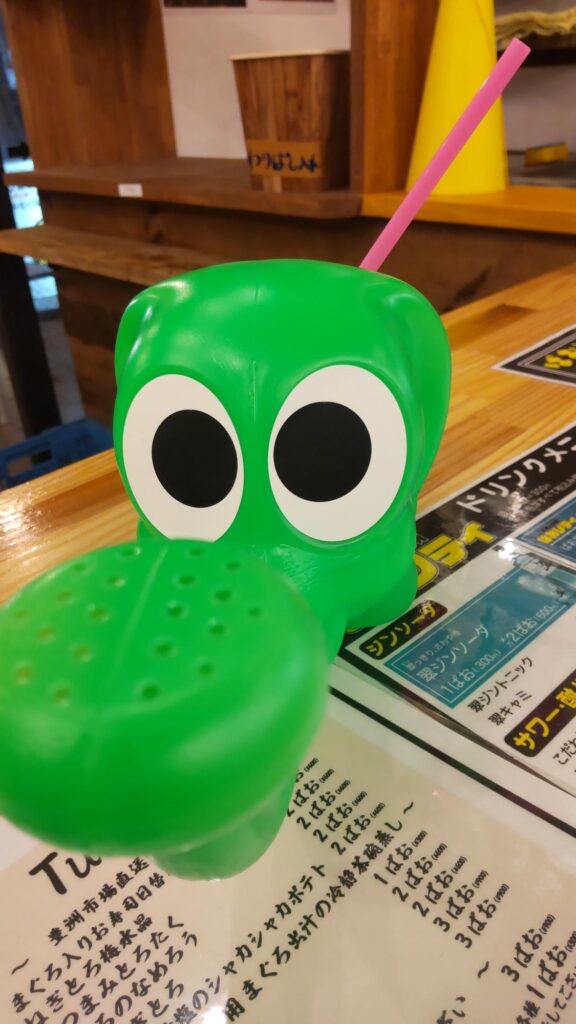 名物のぱおさわー2パオ。何とも斬新な像のじょうろで飲むスタイル!!中身はパインサワー、飲みやすいですよ。