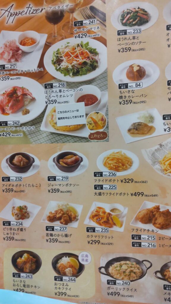 そして料理も、フライドポテト329円、からマリフリット329円、ちいさなマルゲリータ439円、蒸し鶏キャベツサラダ329円、若鶏から揚げ373円が110円引きとのことで、ばっちりじゃないですか(^^)/