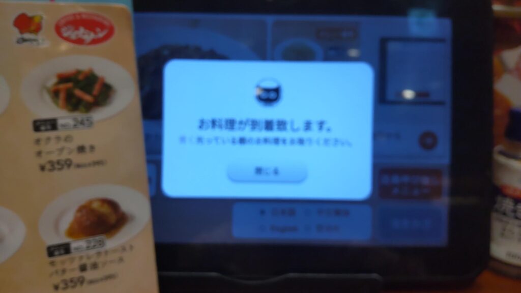 猫ロボ大活躍。料理到着前にお知らせがあります。