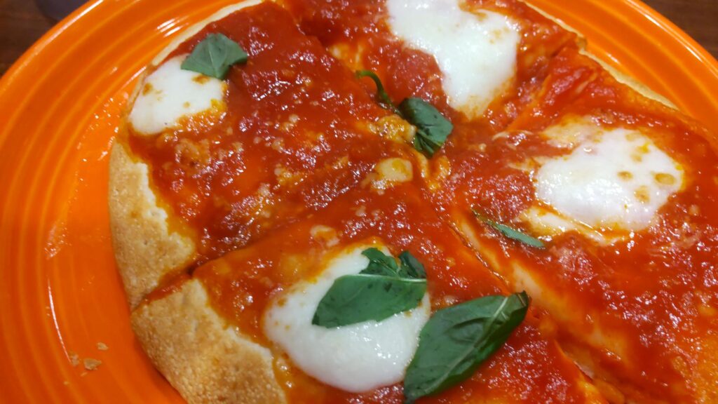 マルゲリータは生地がパンタイプ。トマトソースがたっぷり&モッツァレラチーズもきちんとのっており、おいしかったですYO(^^)/