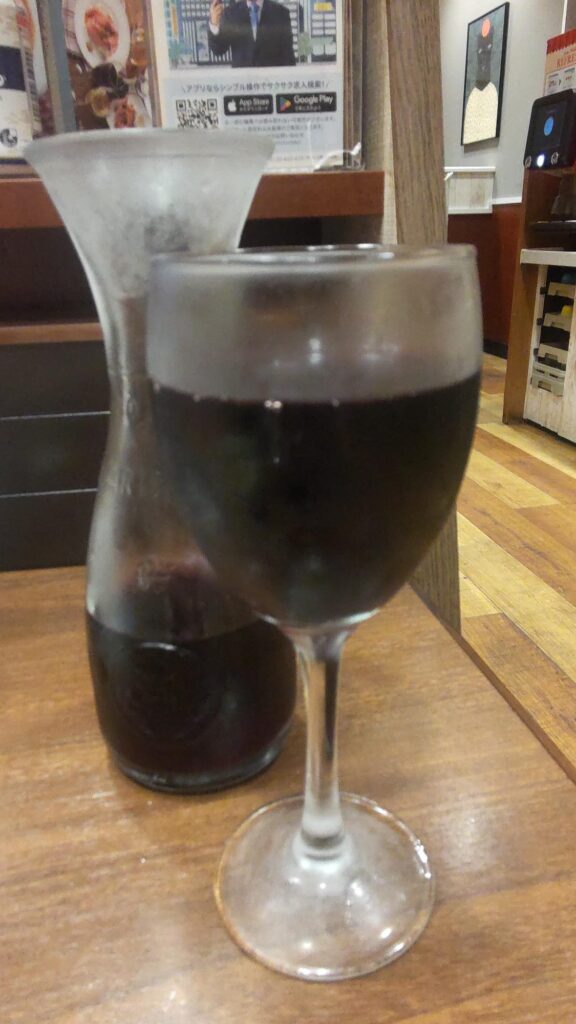 赤ワインデキャンタ。ワインは少し甘めでした。