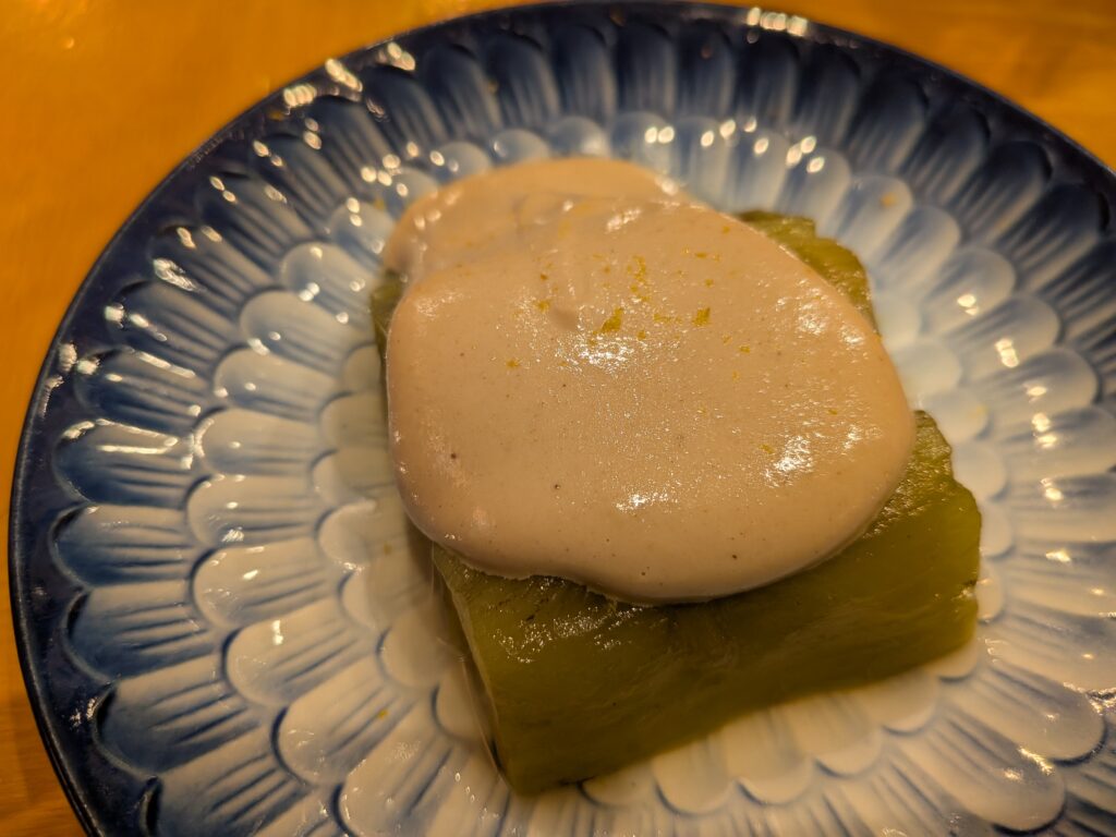 まずは広島の竹鶴酒造「竹鶴」があったのでぬる燗でお願いしました。合鴨農法米を使用した清酒です。温度絶妙!!さすがでした。