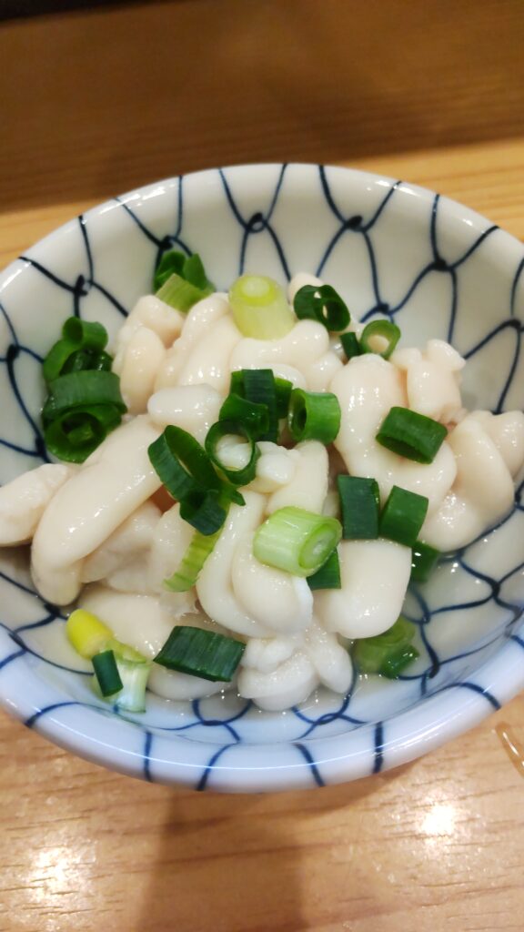 白子ポン酢310円。晩杯屋さんはその日に河岸で仕入れているので、新鮮なんですYO!