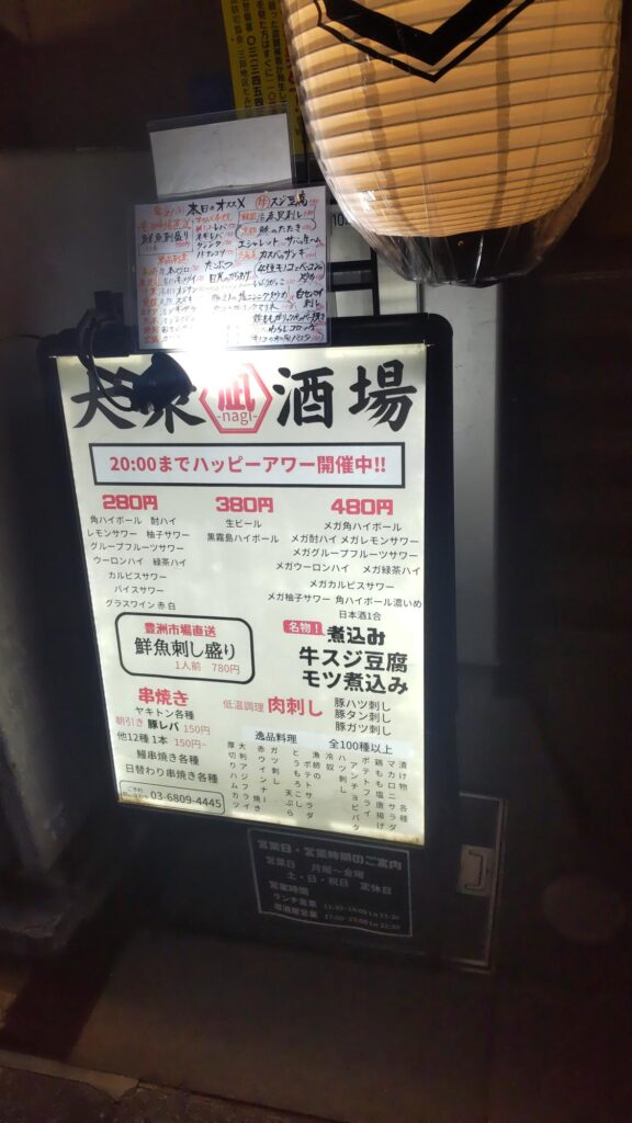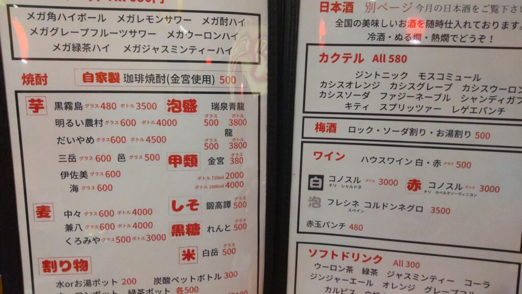 何と20時までハッピーアワーを開催しているんです。ハイボールやサワー280円(メガ480円)、生ビール380円なり。