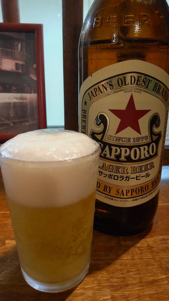 サッポロラガー赤星大瓶650円の2度注ぎで、肝臓のウォーミングアップ!