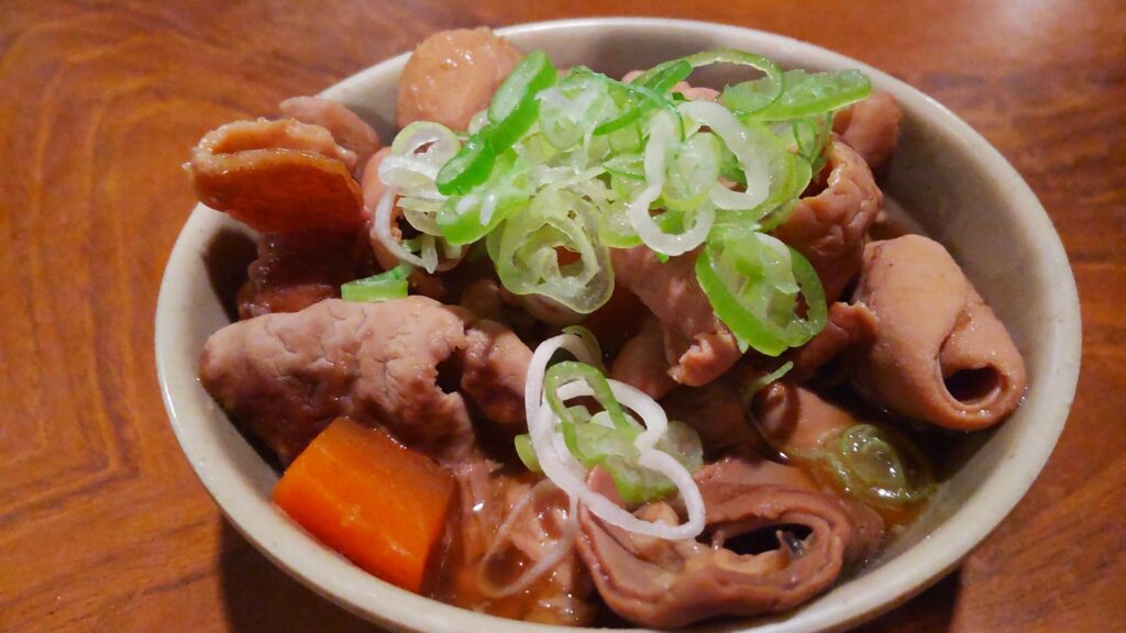 もつ煮込み380円ーーー安い。ニンジンなどの野菜と煮込んだあっさり味、安定のおいしさ。