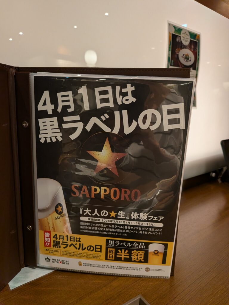4月1日は、1977年に「サッポロびん生」(現・サッポロ生ビール黒ラベル)が発売された記念日「黒ラベルの日」。2018年に日本記念日協会に認定され、毎年4月1日は「銀座ライオン」などの対象店舗で、黒ラベルが半額になるキャンペーンが実施されるビールファンにとって特別な日なのです!!