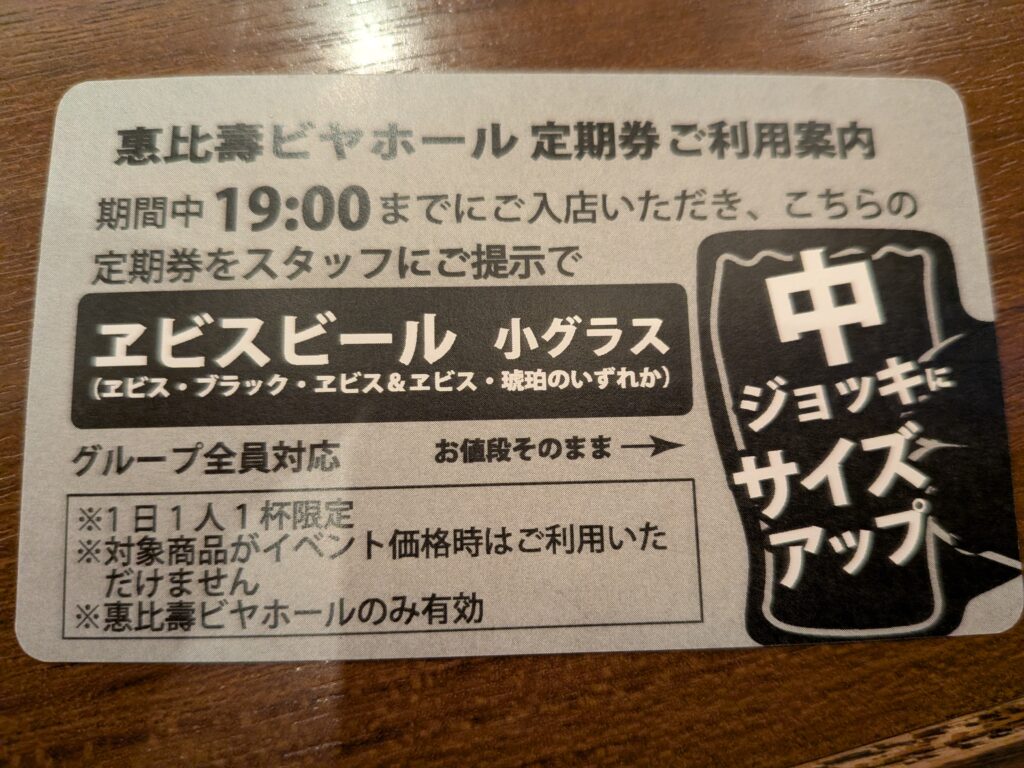 ビール小ジョッキー>中ジョッキにサイズアップの定期券をいただいちゃいました!!