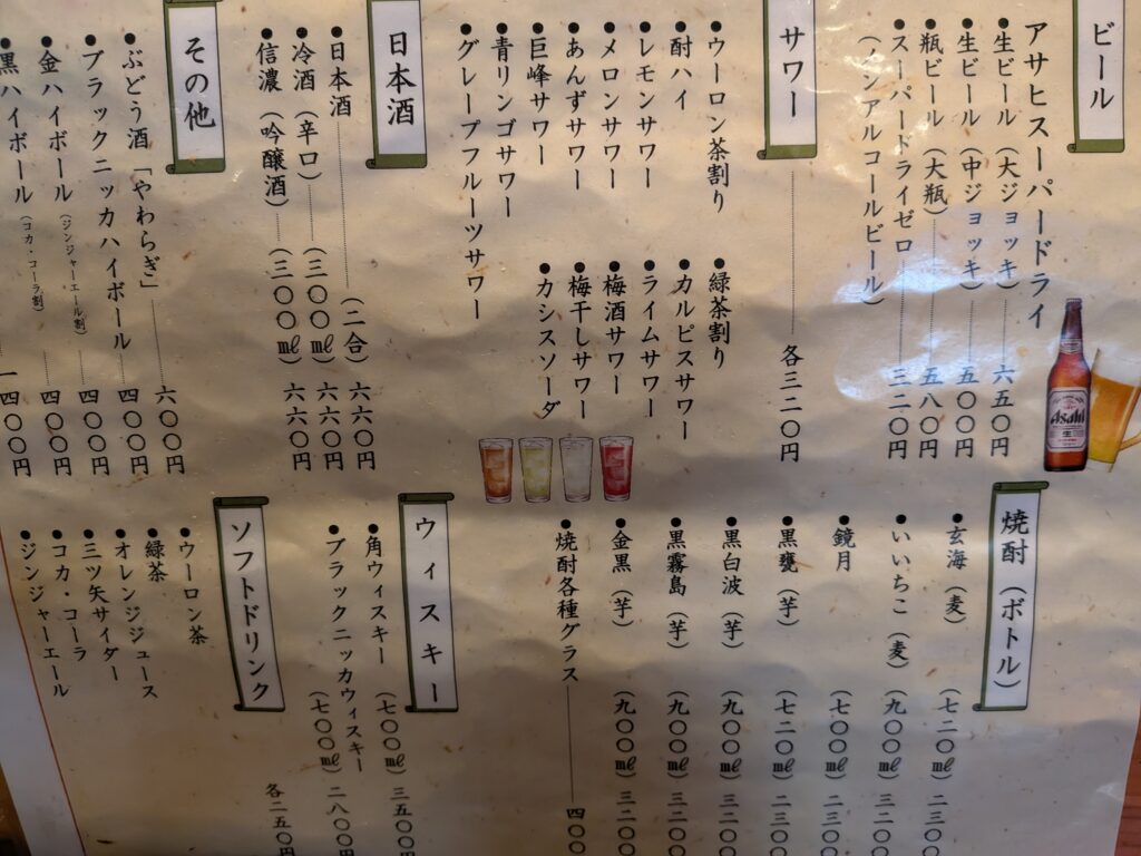 お酒はサワー類は320円、ボトルは2300円~とリーズナブル。